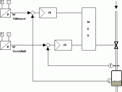 unterlagert zu lösen sein. Damit ist die Struktur einer Kaskaden-Regelung entstanden. Es kann auch verlangt sein, die Durchfluss-Regler auf