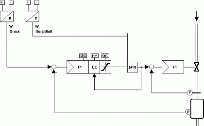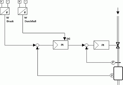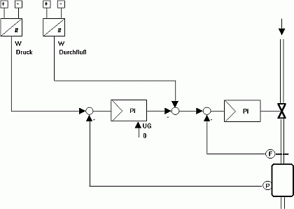 so liefert der Druckregler seine größte Stellgröße und behindert die Regeleingriffe des Durchflussreglers damit nicht.