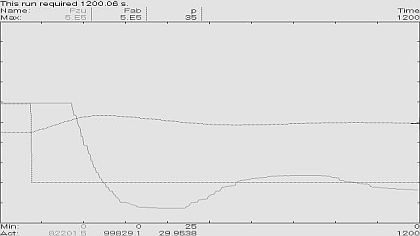 gutes Ausregeln des Druckes durch den begrenzenden Eingriff auf den Durchfluss in den Behälter. Auch hier hat der Druckregler Ruheparameter