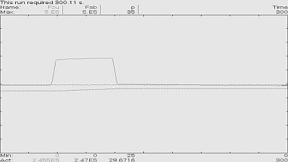 Erreichen des Endwertes die Druckbegrenzung den Durchfluss wieder herunterregelt. Der Sollwertsprung nach unten wird jedoch mit einer